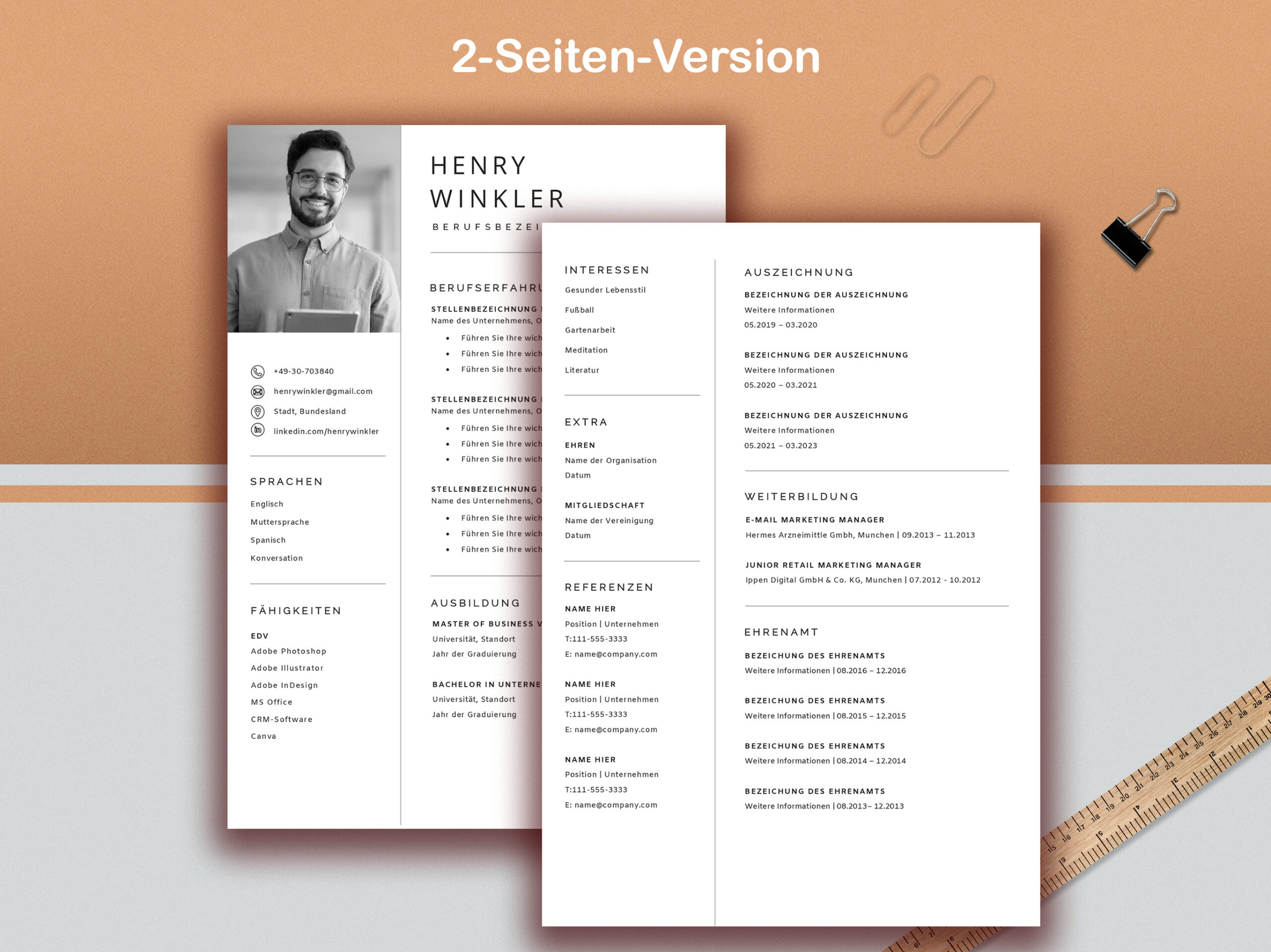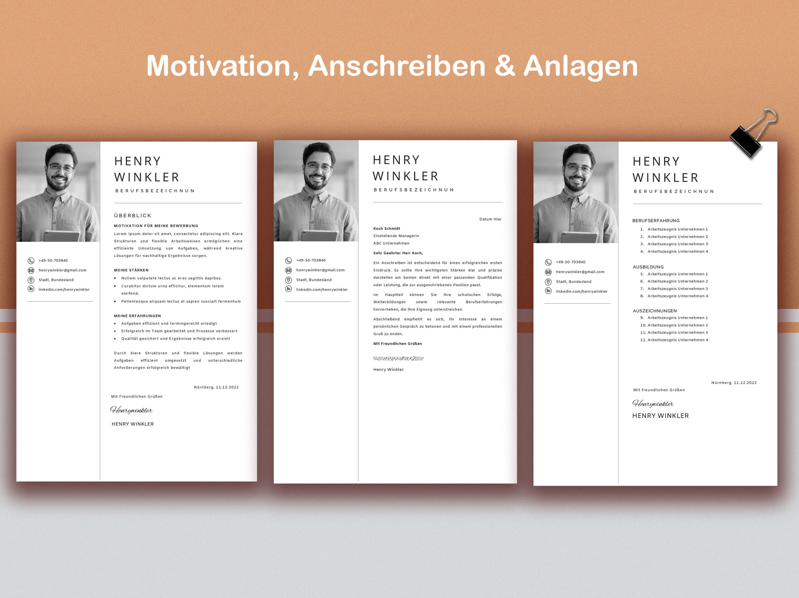 Moderne, vollständig editierbare Bewerbungsvorlage mit Lebenslauf (1–3 Seiten), Anschreiben, Referenzen und Leitfäden sofortiger Download für Word & Mac Pages.