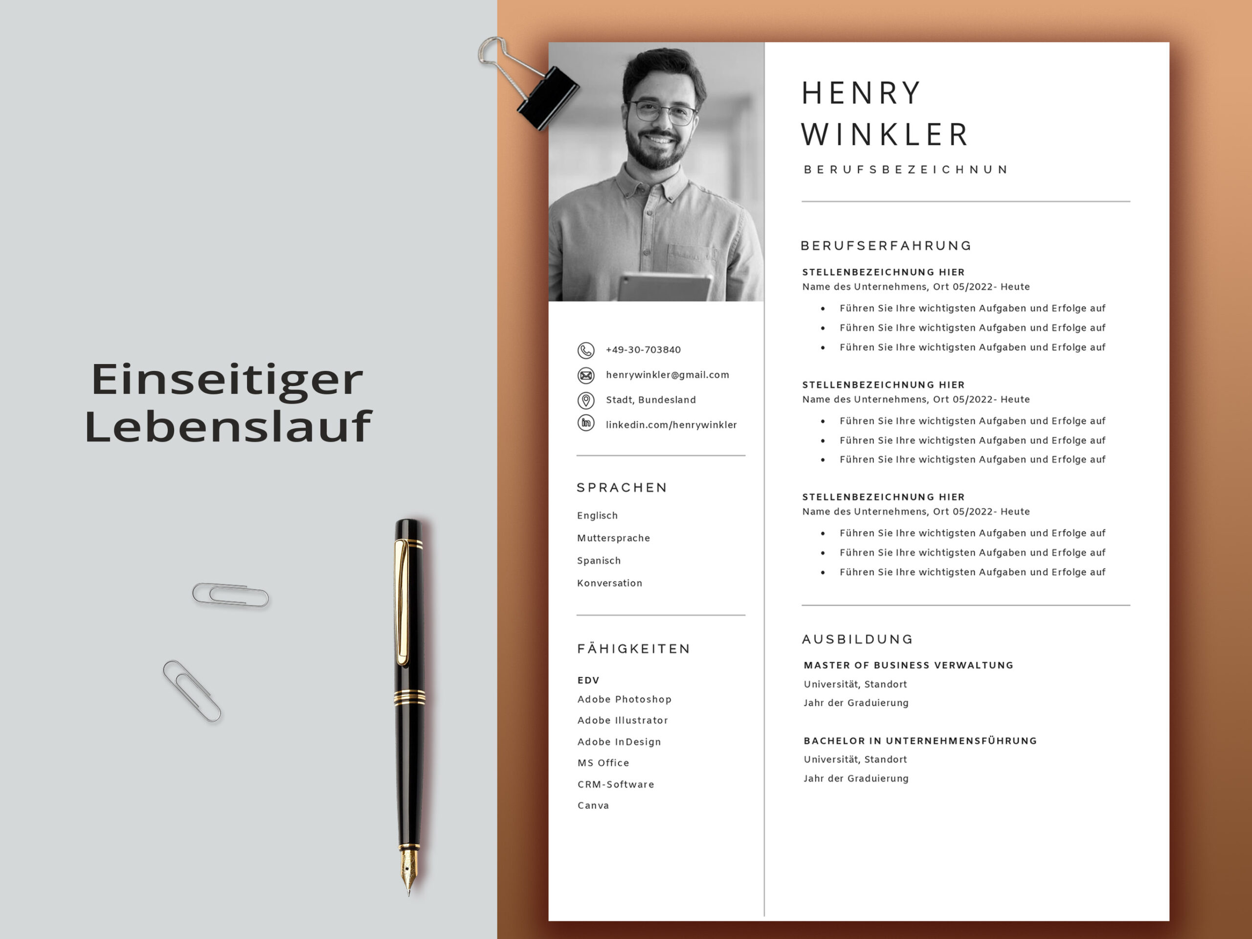 • Mehrere Optionen: Wählen Sie zwischen 1-, 2- oder 3-seitigen Lebensläufen