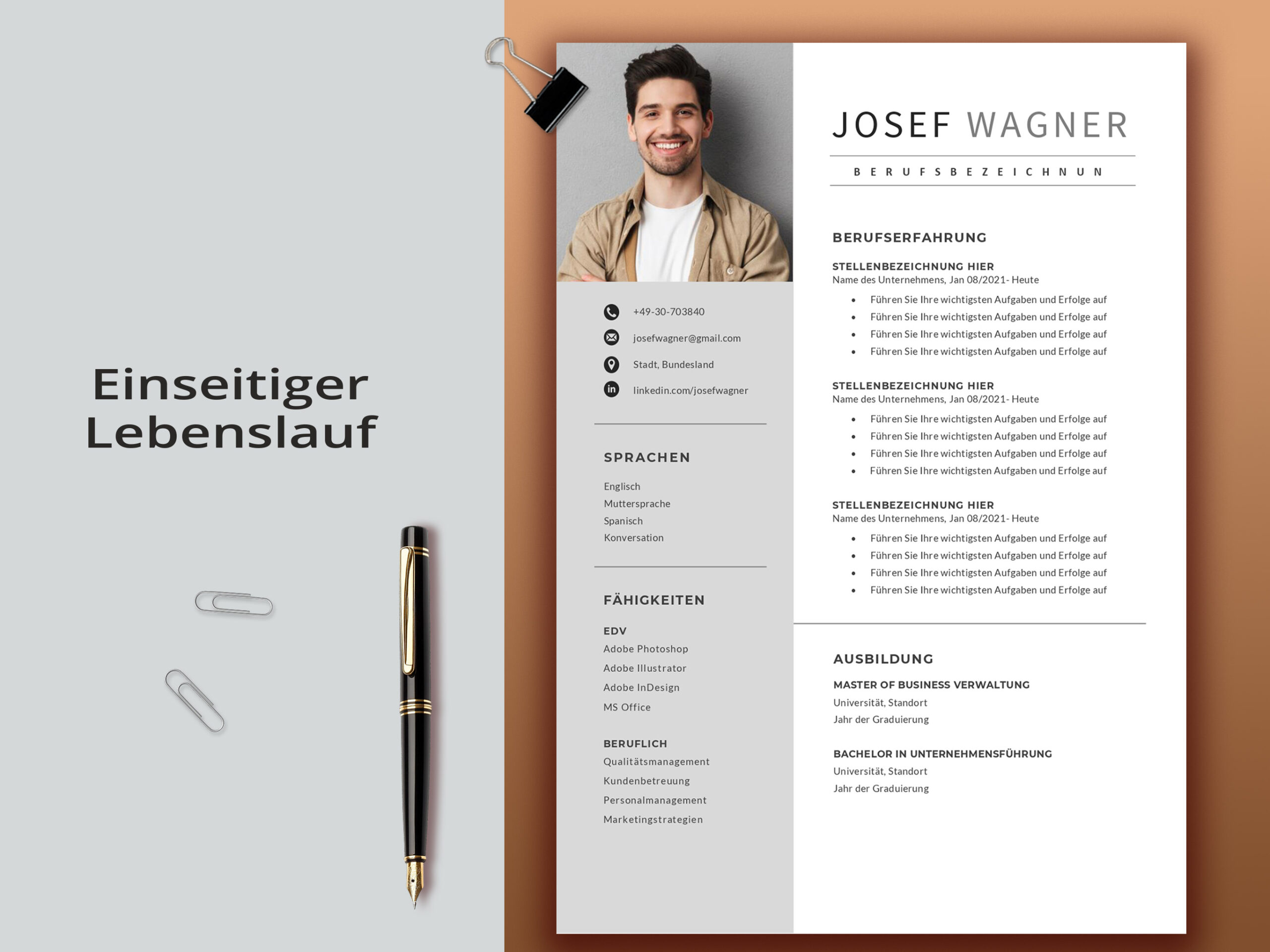 • Mehrere Optionen: Wählen Sie zwischen 1-, 2- oder 3-seitigen Lebensläufen