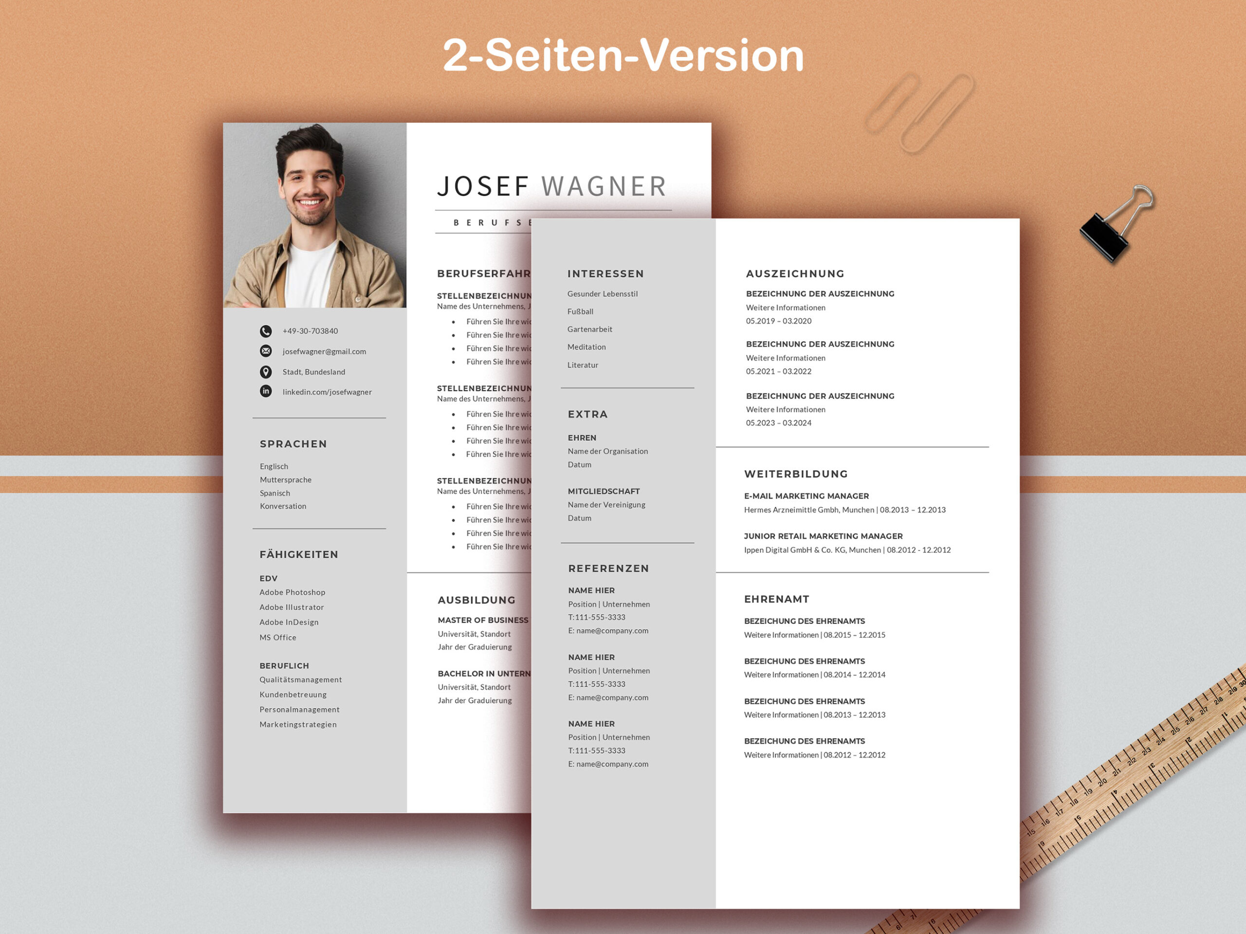 German Resume Template, CV Template, Cover Letter (Word & Mac Pages)